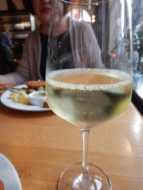 まずはアップルワイン0.2リットルで乾杯。ドイツなどでは法律で、飲料のグラスやカップにはアイヒシュトリヒ(Eichstrich)という容量を示すラインをつけることが義務づけられています。ビールの場合は勿論、泡を除外。少し多めにサービスしてくれました。