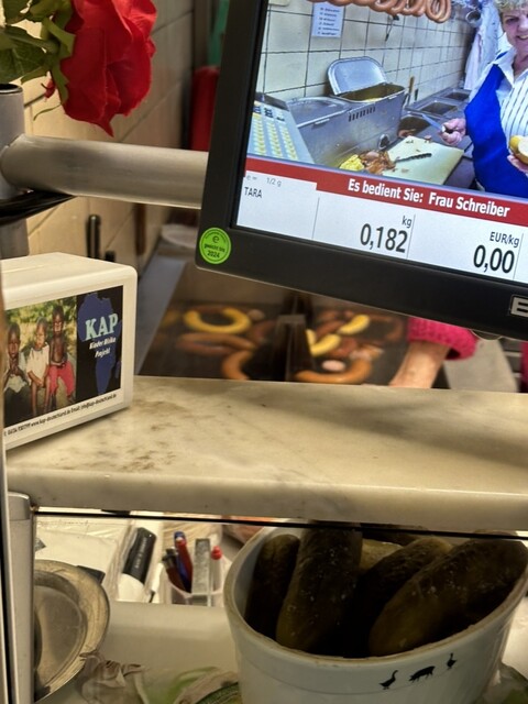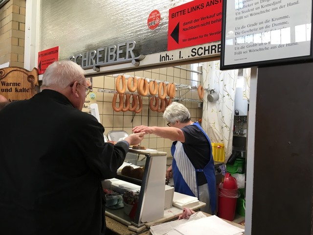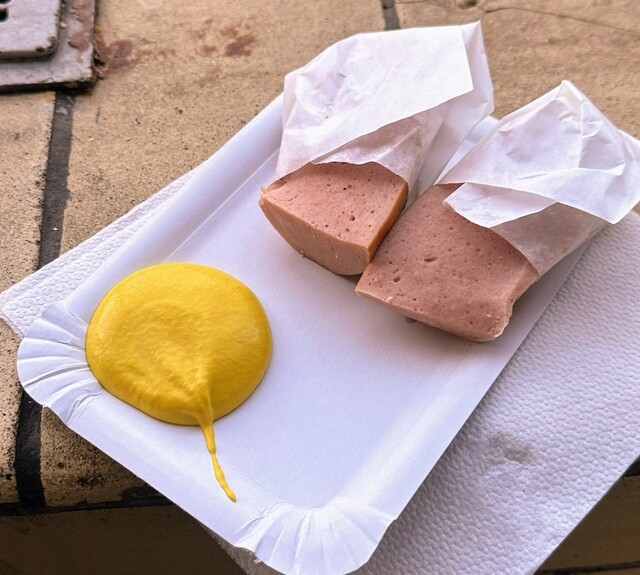フランクフルト の Kleinmarkthalle(クラインマルクトハレ)市場を訪問。地元の人が多く列をなしているソーセージ屋を発見。きっと美味しいのだろうと持って列に並びます。ソーセージの種類が4つ...