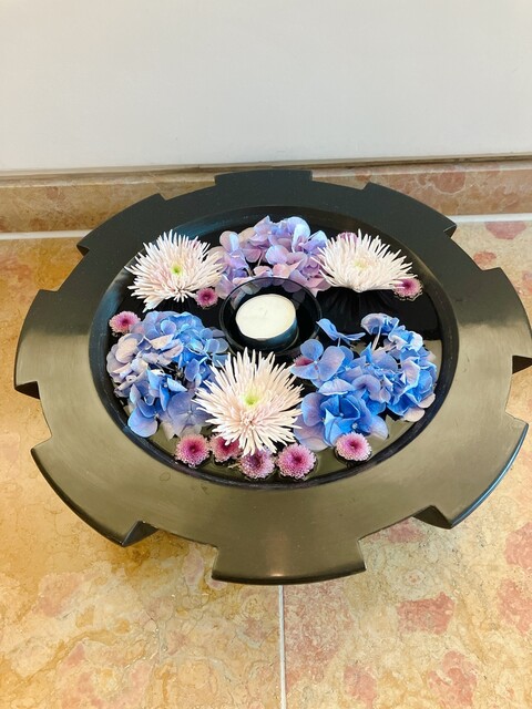 レストランの外観もホテルも、全体的にドライフラワーの紫陽花で美しくデコレーションされていた。