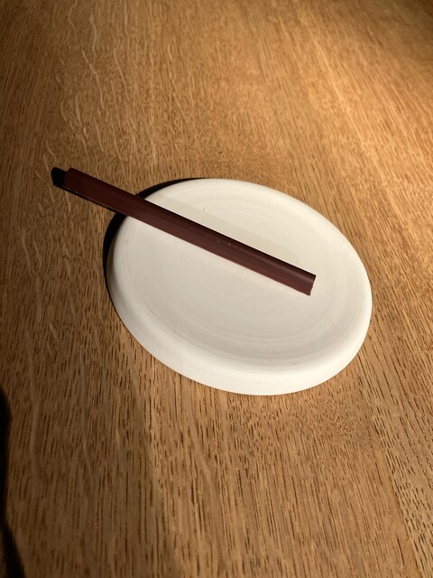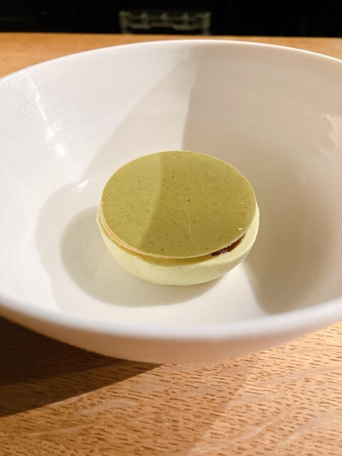 上にはホワイトチョコをタラゴンで抹茶色にしたプレート