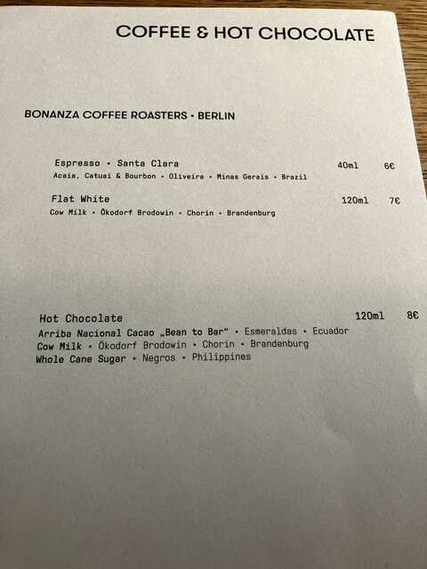 英語の説明は半分も聞き取れなかったが、エッセンスはわかった。全部デザートに始まる発想自体はかなり面白かったので、もっとおいしさにも感動できると、日本の感覚でいう価格に見合う満足度に近づく。(ドイツは物価日本の2倍くらいの印象だったので、そう考えると良心的な値付けだと思う)