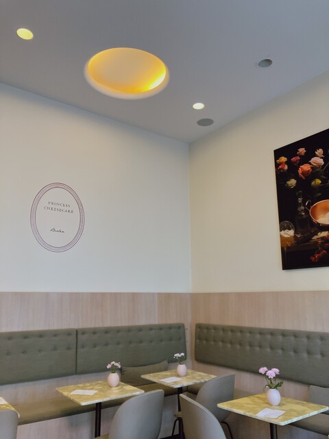 Princess Cheesecakeという店名にぴったりの、パステル調のかわいらしい店内。