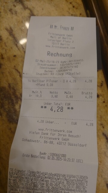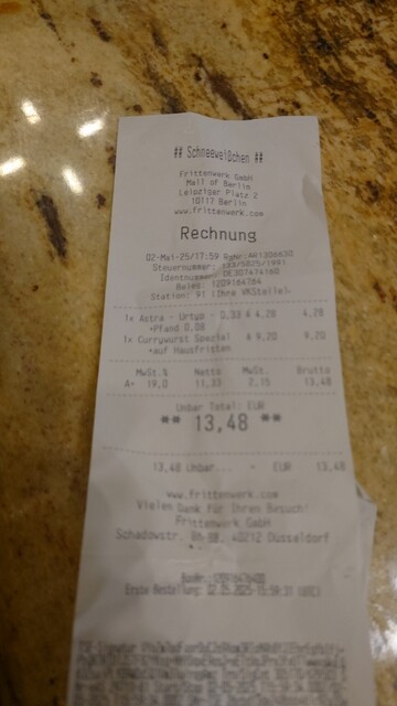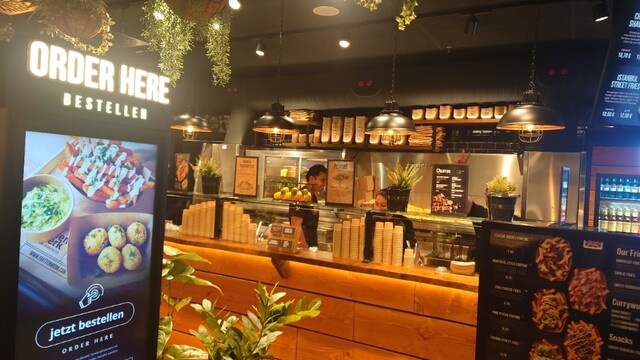 カリーヴルストとビールを店頭の大きな端末で注文しました。