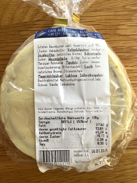 Cafe Riese Köln(カフェリーゼケルン)のバームクーヘン。