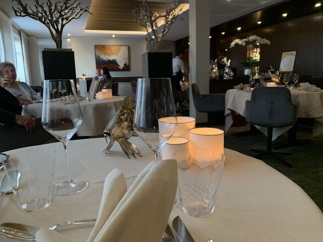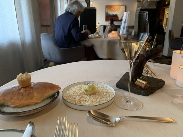 交通事情悪く、30分遅れで20時到着、ホテル階下の2つ星レストラン。地元密着ビストロも壁を隔てて同建物内にあり、そちらは賑やかに盛り上がっています。テイスト違う2種メニューから選べる4〜7コース、5コ...