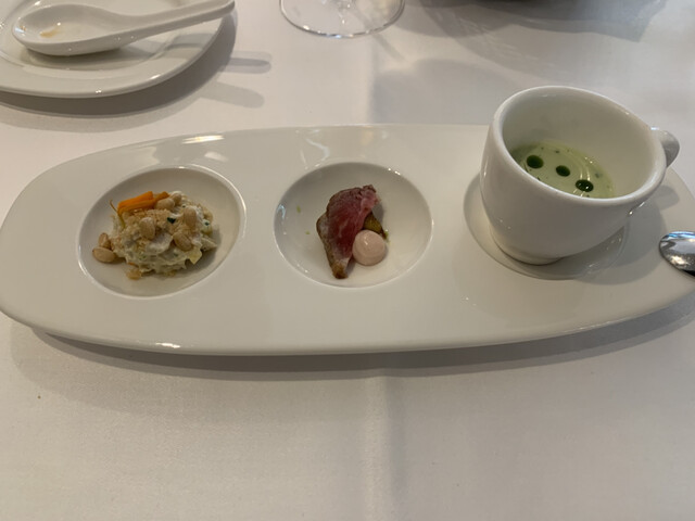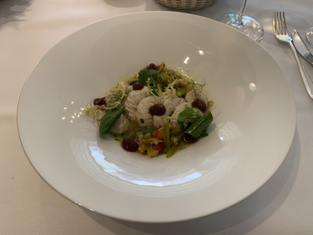 マンハイム駅北口徒歩10分の星付クラシックフレンチ。予約時は2つ星でしたが、2025年は1つ星になってしまってます。平日13時予約、入口は狭いですが、店内末広がり、ほぼ満席、皆さまワイン飲んでらっしゃる。お値段ドイツにしては手頃、選べるセットメニュー63€。ペースト状のツナマヨ、モチモチ豚、分かりやすいお味で旨いです。デザートのみいちご酸っぱく、サワーも酸っぱく、バランス悪いです。接客・雰囲気よく、ミシュランの星とか関係ない常連さんに支えられているお店ですね(//∇//)