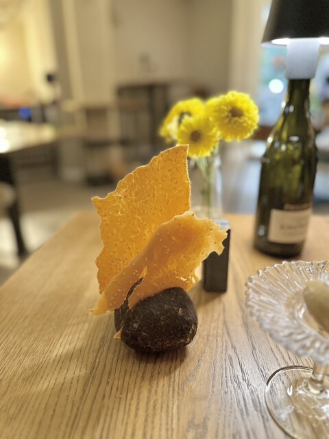 ④ポテトの泡 薄切りドライビーフ キャベツのポン菓子