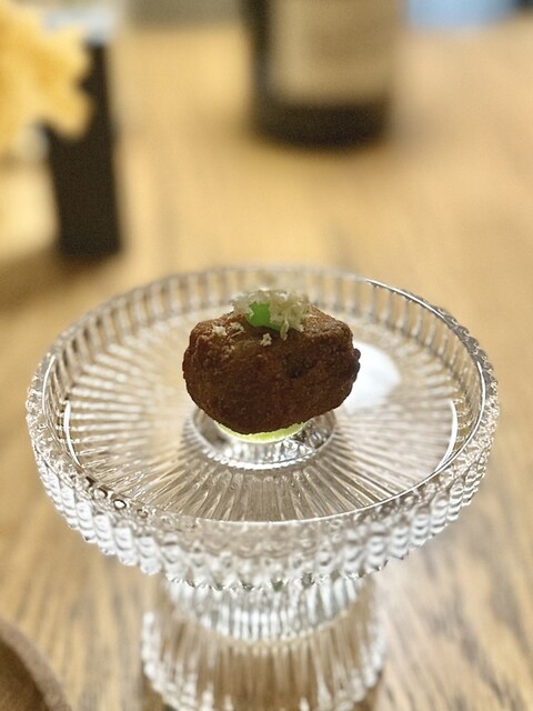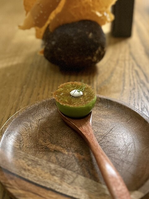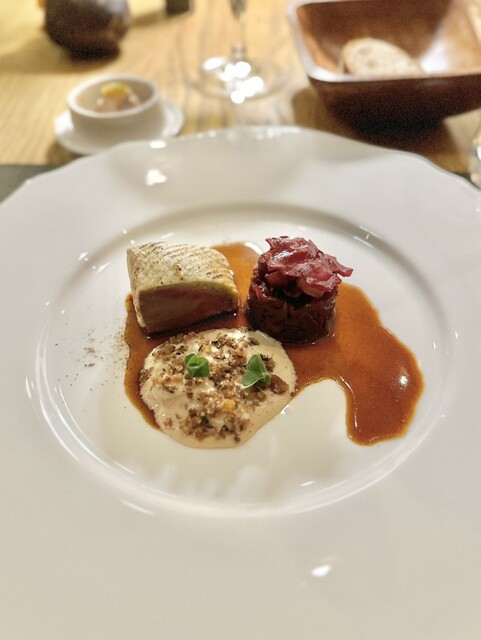 ⑧ガチョウのピロシキ フォアグラレバームース ガチョウのポテトラビオリとガチョウのエキス