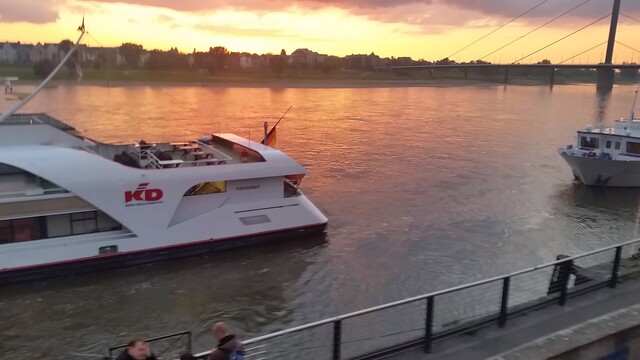 初ライン川。夕暮れで夕日が沈む最高の