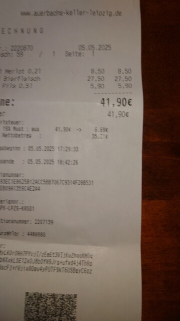 かつては森鴎外やゲーテも通った酒場ということですが、どうもその当時とは運営形態が変わっていて今はレストランとして有名らしいです。