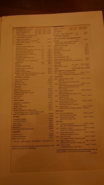 お酒は赤のグラスワイン0.2ℓ8.5ユーロ(1,417円)とビール0.5ℓ5.9ユーロ(983円)を頂きました。