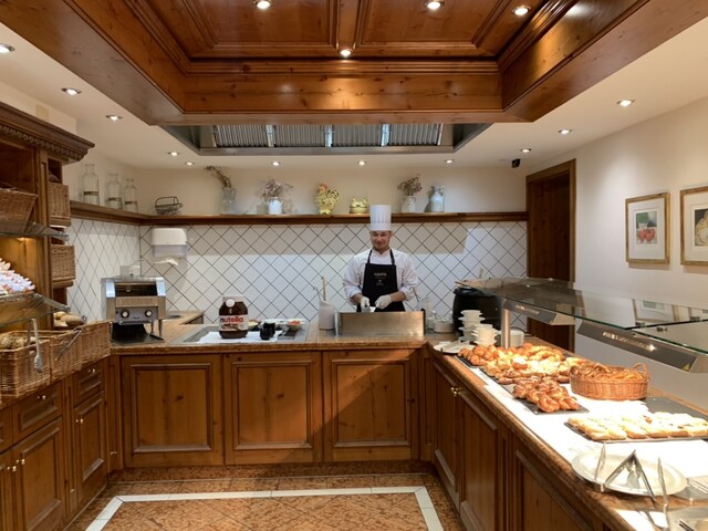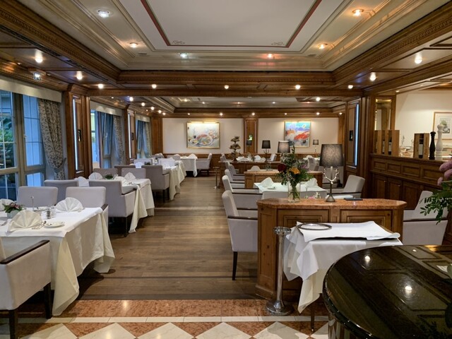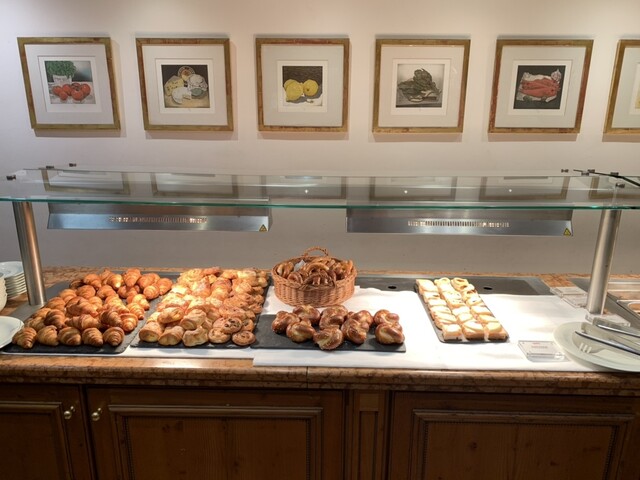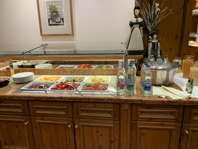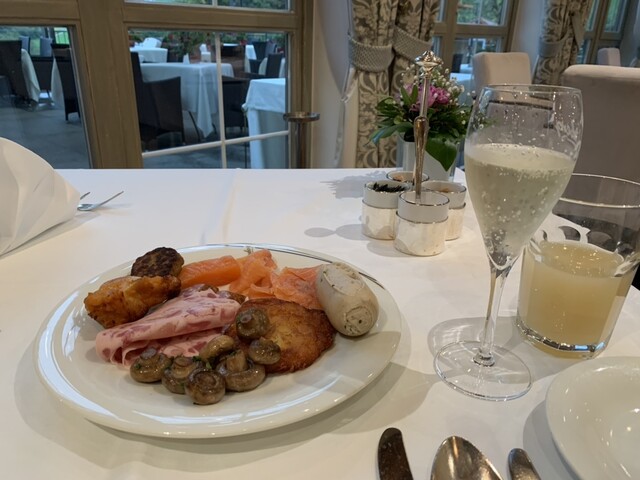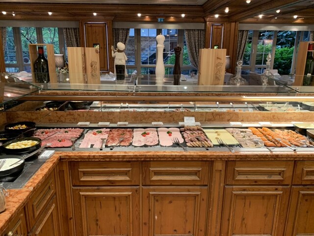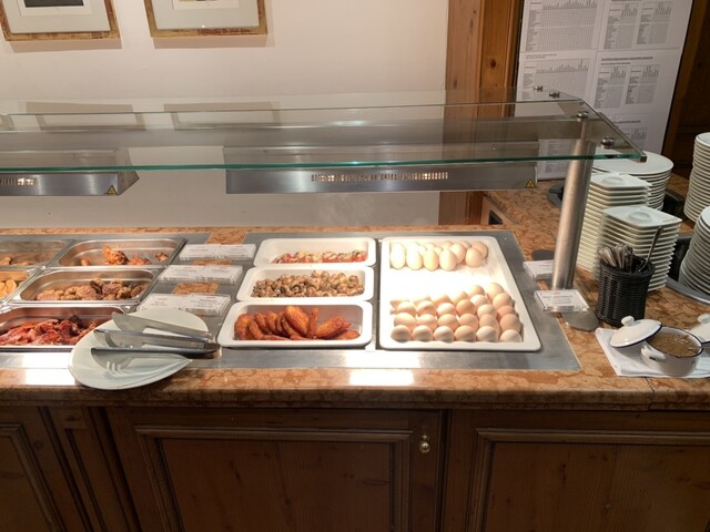 ホテル内のビブグルマン、カントリークッキングですが、昼夜の他に宿泊者の朝食ブッフェをも提供しています。色々食べたいですが、味濃いめ。体調維持のため、なるべく1日1食にしたいのでガツガツ食べるのは我慢です。スパークリングワイン・ビールもフリーフローですが、クルマの運転あるので、これまた我慢。