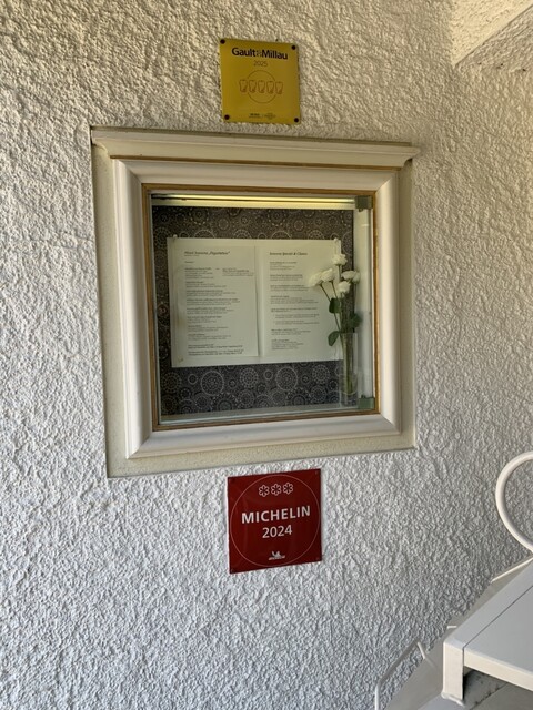 ドレイスの3つ星、ゴエミヨ5トック。いい天気なので、駅からトランク引いて田舎道40分ぽこぽこ歩いて到着。金曜ランチのせいか、テーブル埋まりは7割ほど。BGMは抑えて歪ませた50年代R&B、クールな内装...