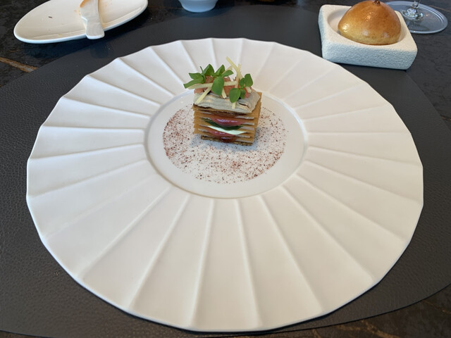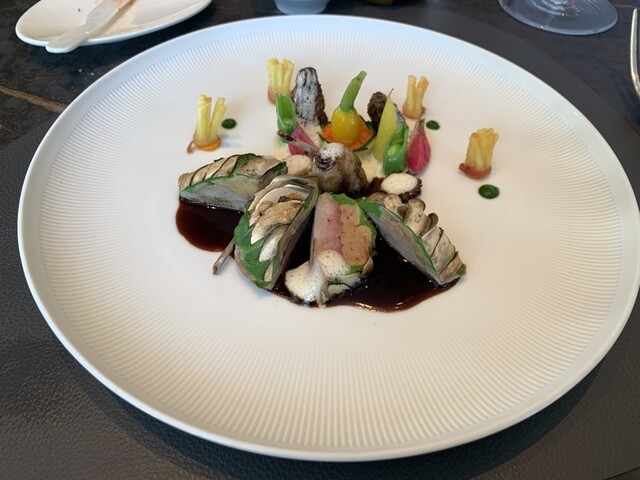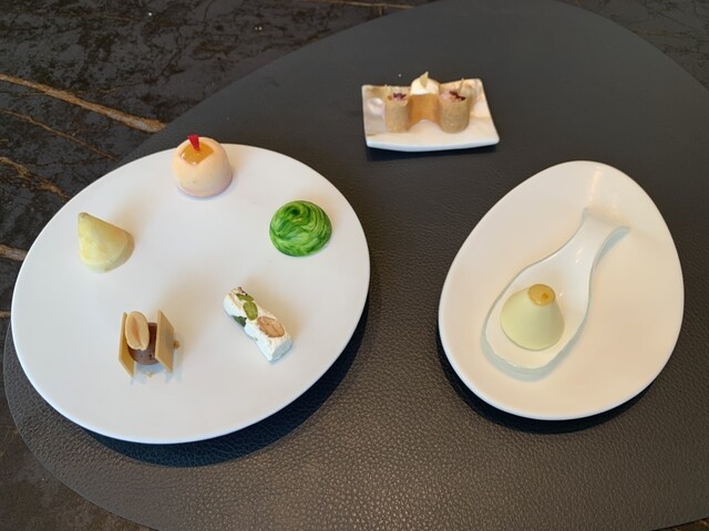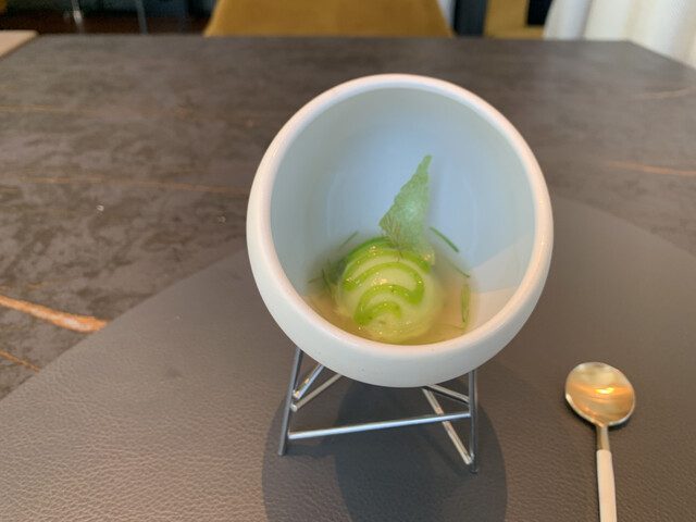 ピースポート街中の3つ星・5トックと当店も業界トップレストランで土曜ランチ。サービススタッフ単語とはいえ日本語交えるので、リラックスさせるレストラン目指してますね。その分男性ボッチ客5テーブルは欧州トップレストランにしては異例かも。メニューは4〜6コース、もしくはアラカルト。朝から時間経っていないので、最小4コースにスタンダードワインペアリング、ワインはそれぞれ2種から選べます。メニュー昼夜共通、お味は技巧にこだわったアーティスティックな異種複合ですが、それなりに調和しており、お味まずまずです。ワイングラスはZwieselのハンドメイド、当方初めて使用ですが、確かに金属っぽい音します。