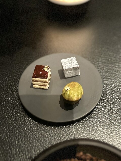 バターが3種類用意されており、どのバターも手が込んでいて素晴らしく美味しいのでパンがどんどん進んでしまいます。しかし食べ過ぎると料理の方が食べられなくなるので我慢でありますw 特筆すべきは「⑩ブルトン産聖ヤコブホタテのカルパッチョ」で、このホタテの甘さがとても印象的でした。デザートからの小菓子たっぷりで良いですね~♪ 驚きは少ない一方で調理の基本はしっかりしており、火入れ感が良いですね。コシヒカリ、焼サバは日本でも手軽に食べられますので個人的には若干残念なメニューでしたが、恐らくドイツ人にはとても珍しいので評判が良いんでしょうね。どの料理も色鮮やかで見た目も美しく、食欲をそそります。味のバランスもとても良く、決して飽きさせない。ルレエシャトーだけあって、トラディショナルに近いコースでしたが満足しました!!ここまで来た甲斐がありましたよ~♪