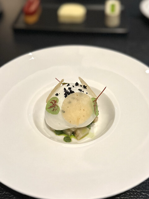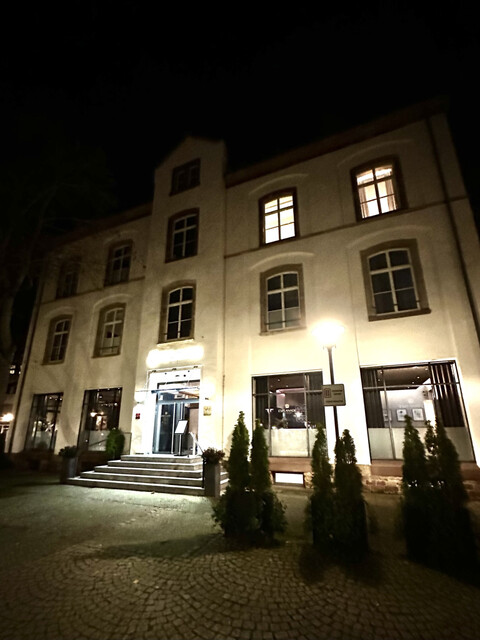 ザールラント州都ザールブリュッケンの街中ルレエシャトーホテル内レストラン。内装はバーみたいな雰囲気、ポピュラーミュージックがBGMですが、ブーミーで耳障り…少なめの5コースにワインペアリング。3種のバ...