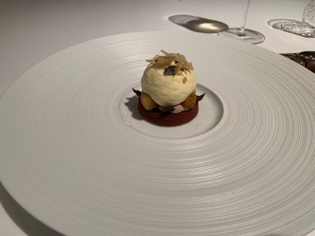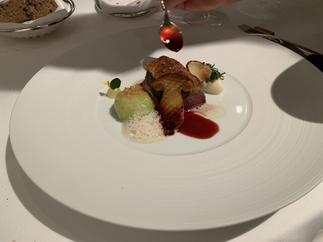 ザールブリュッケン東地区、ロンドンっぽい建物エリア、欧州レストランには珍しく月曜営業です。コースは皿数で3択、事前オーダーでアラカルトも可能。物量多いとのことで、最小4皿。でもたっぷりアミューズ・パンも出されるので充分です。少々凝り過ぎソースですがいい感じの生甘海老、プルーチーズオマール海老、見た目もお味も良いです。反面パン粉付雄鹿は食感よろしくなく、いまいち。珍しく甘くないデザートがうれしいです。
