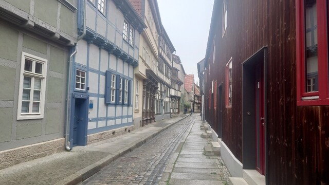 以前行ったヴェルニゲローデ(この町もかわいらしい建物が多かった)はクヴェードリンブルクから30キロ西に位置します。