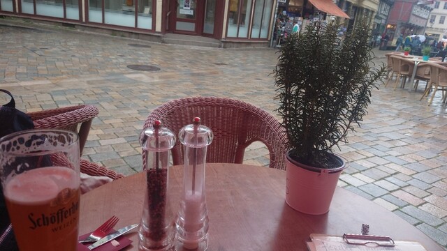 町の中心街で賑わっていた当店のテラス席に入ります。