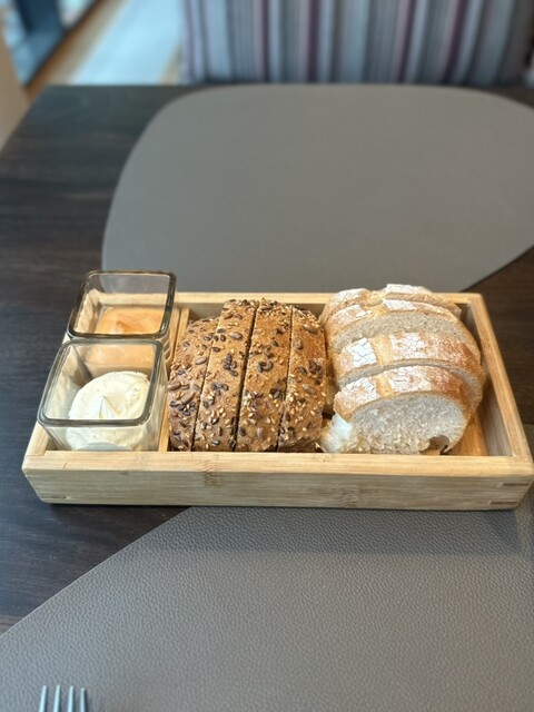 ウェイターさんは少ないと言っていましたが、結構なボリュームですねw これは海外あるあるであります。キッシュの質はとても高いですね。カリッ&サクッ&しんなりとした食感のバラエティが豊かで飽きさせません。どっぷりと添えられたサワークリームがかなり相性良いと思います。ベジタリアンにしてはとても美味しいですよ。満足度が高いです。パンにはバターではなく味付きディップ。これもまた美味しい♪でもパンの量は恐らく2名以上を対象としていると思うので、多すぎて食べきれません。最後のデザートは量が多くてとても嬉しいです。日本ではこのサイズは絶対出てきませんから。デザートを満喫する事ができました。