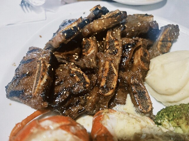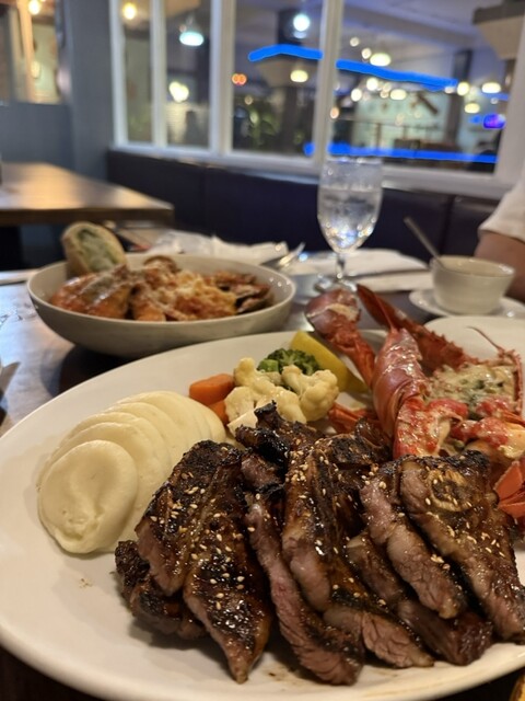 ステーキ&シーフードを堪能できるお店。ディナーは下手にコースにするよりアラカルトの方がお得!!