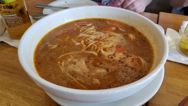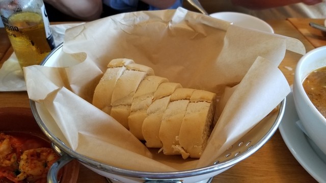 えび入りのスープパスタ。ライス付きの他、フレンチブレッド付きがありますが、今回はライス付きをチョイスし、フレンチブレッドは別に注文しました。