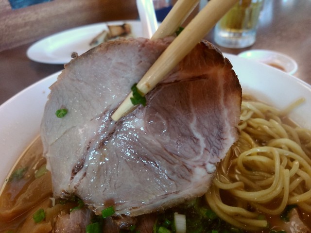 ●チャーシューは、箸で持てないくらい柔らかくて薄いチャーシューで美味しかったです。
