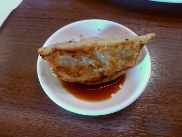 ●先ずは、醤油ラーメンのスープと麺の味見儀式をしてから残りの麺と餃子を食べました。