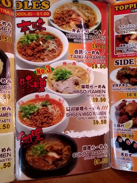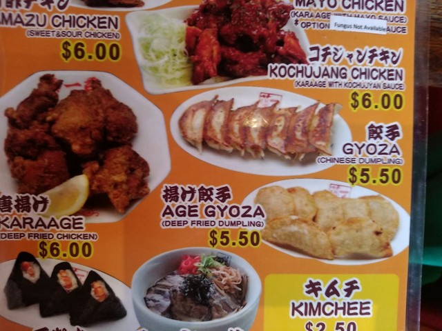 ●今回は、お店の人気メニューNo.3の【味噌らーめん(並盛)$9.50】と【餃子$5.50】を注文しました。