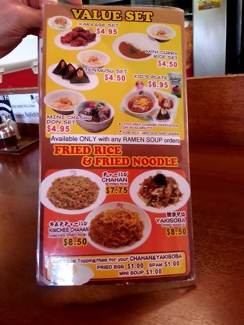●ラーメンとビールをセットで注文すると上記の「餃子」+「ビール」が$6.50という得な値段になります。