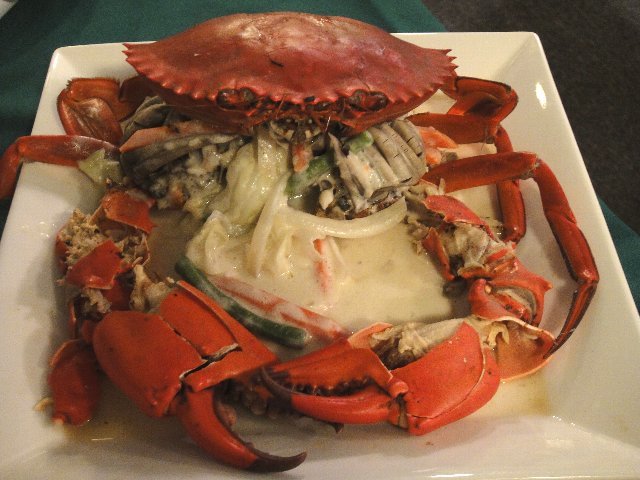 クラブの中にはココナッツをベースに味付けされた色々な野菜が盛りだくさんです。