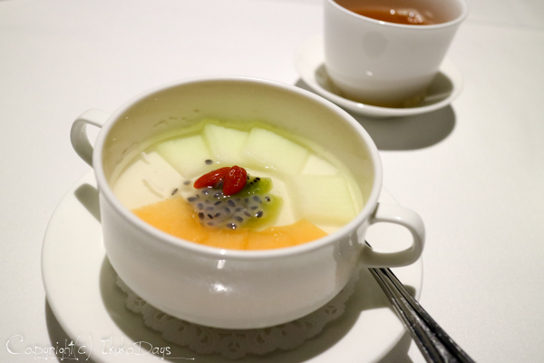 「季節のフルーツ入り杏仁豆腐 」。