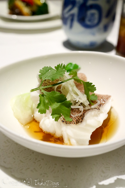 「白身魚の蒸し物 桃李スタイル」。