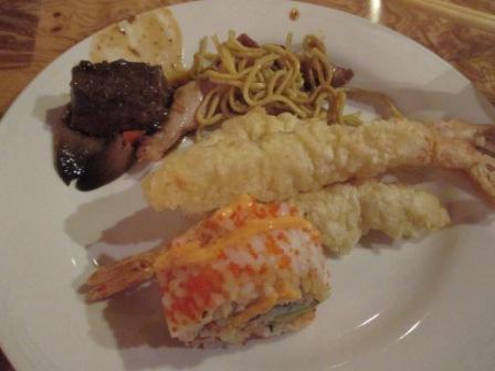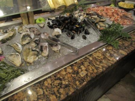 ビュッフェは、バーベキュー風のもの、しゃぶしゃぶ、天ぷら、お鮨など日本人受けしそうな?日本食的なものから、
