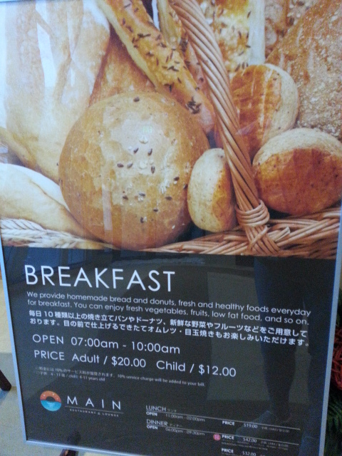 ホテル内のレストランこのMAINがいろんな口コミを見ると人気ということで初日に行きました。