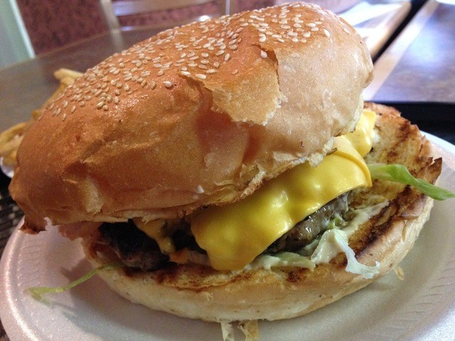 ガイドブックでグアムの食べ物を色々と探しましたが、美味しそうなものは特に見当たりません。笑 なので現地でしか食べられないものを食べることにしまして、まずはこちらのハンバーガーを。