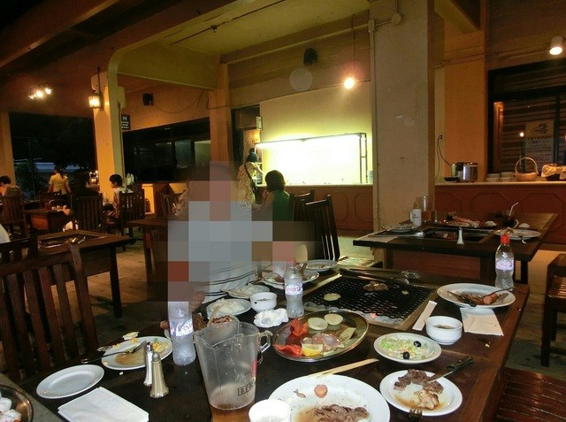 HISのオプショナルツアー経由で予約しました。サンセットが綺麗に見えるという18時台をチョイス。煙がすごい!との噂でしたが、BBQならこんなもんだろうという、感じで問題なかったです。写真は大人3人分の...