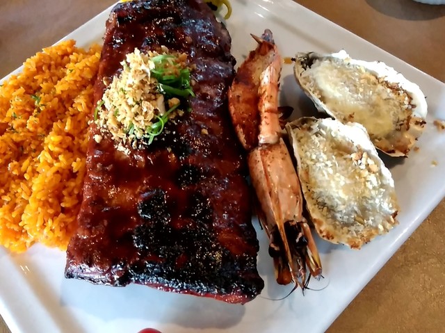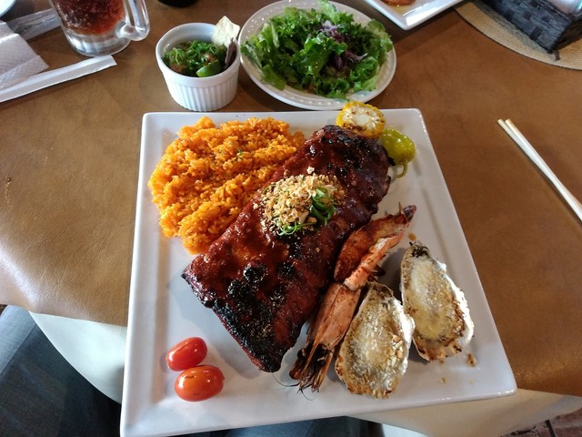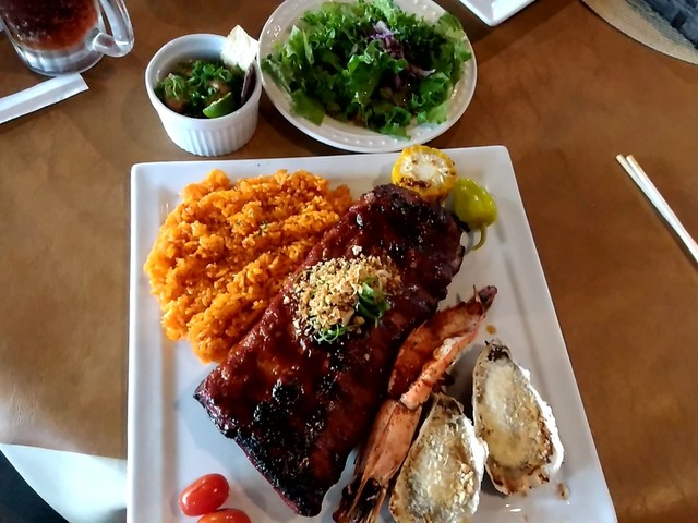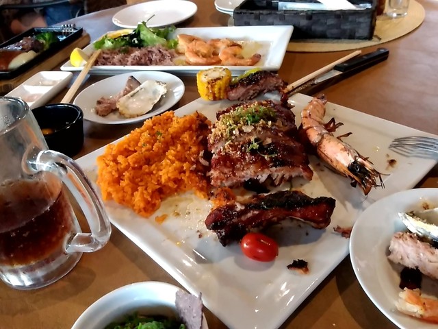 ●コアセットは、ベイビーバックリブ&付け合わせ野菜、大エビBBQ、大粒カキBBQ、キラグエンの生春巻き、ハウスサラダ、レッドライスご付いていました。