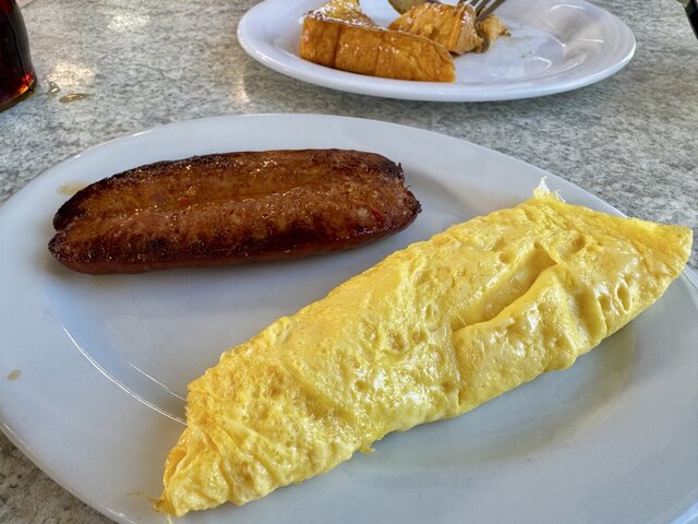 朝食に「Kracked Egg」へ。Eggs'n Thingsよりローカル感が強い。フレンチトーストに卵料理と肉料理を付けて、10ドルとちょっと。円安のため高価な朝食だが、ボリュームが大きいので2人でシェアして充分である。