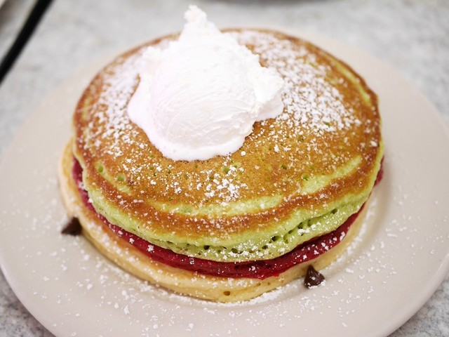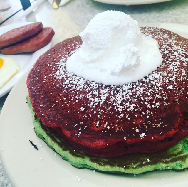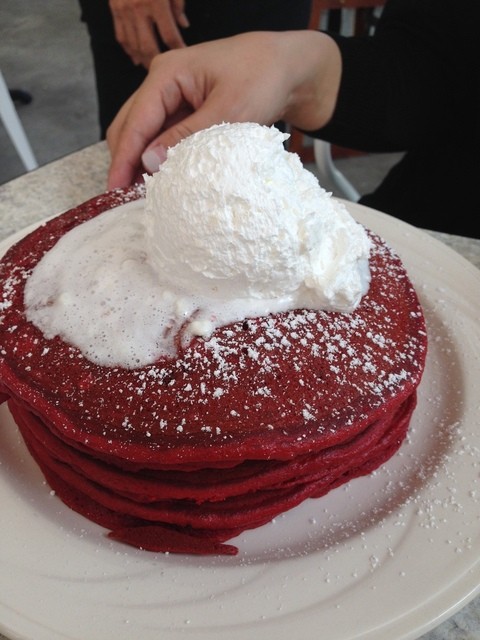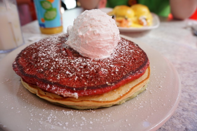 最近よくガイドブックにのっているレッドベルベットパンケーキが気になって注文してみました。
