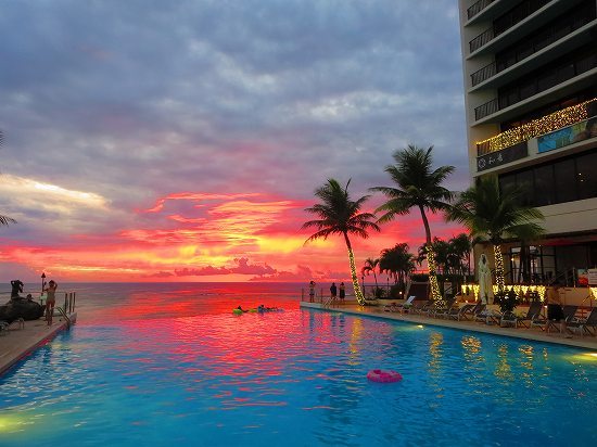 宿泊したグアムリーフホテルのプールから見たサンセット