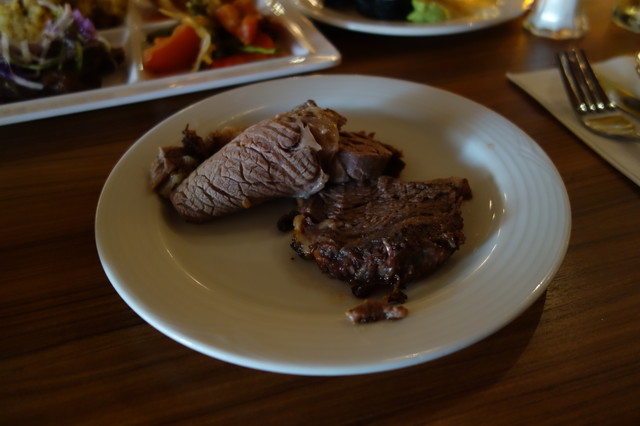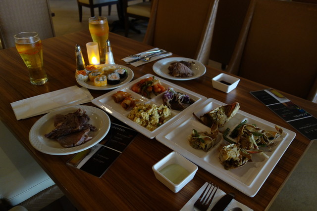 メニュー的には、BBQ的な肉料理、ローストビーフ、寿司、サラダ、デザート、フルーツ等
