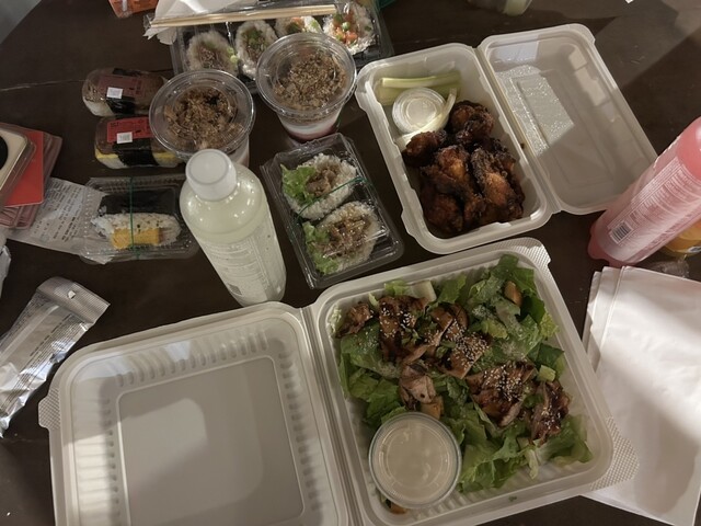 頼んだのはハンバーガーとチキン丼。