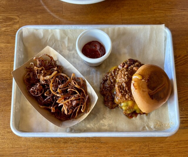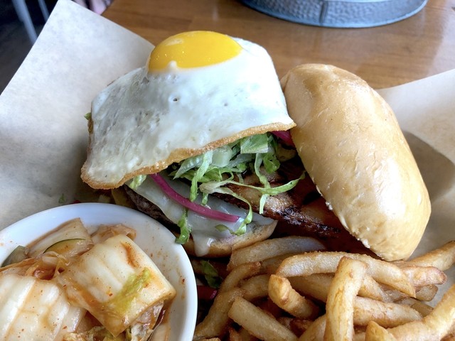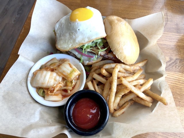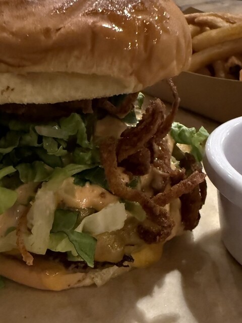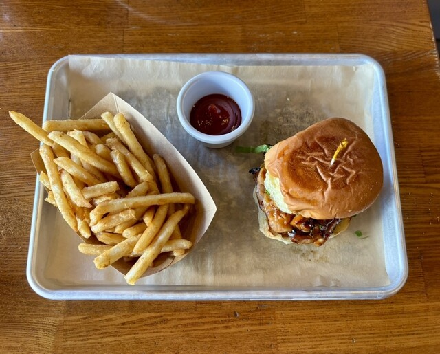 自分が朝から浜辺ランを敢行したので、ガッツリバーガーを食べに行ってみました。