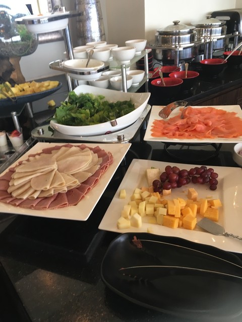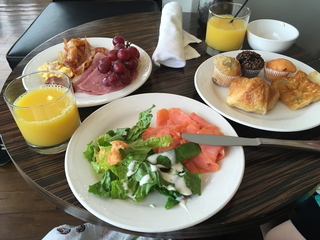 朝食タイムにはフレーク類やパンや卵、サーモンやハムがありますし、デザート類も美味しかったです。ドリンクもジュースやアルコール、ビールや炭酸もあるので自分の好きにカクテル作ったりもできました。