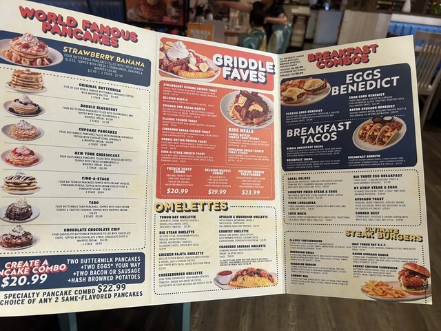 タモンエリアには美味しい朝食(パンケーキ、エッグベネディクト、オムレツなど)を提供している店がいくつもありますが、こちらも有名な1店です。日本に店舗がないので、グアムに行った際には行く価値ありです。特におすすめはオムレツとパンケーキですね。オムレツはボリューム満点で色々と種類があるので選ぶのが楽しいです。パンケーキふわふわではなくオーソドックスなパンケーキです。塩味がしっかりついているので、シロップをかけずにバターのみでも美味しくいただけます。