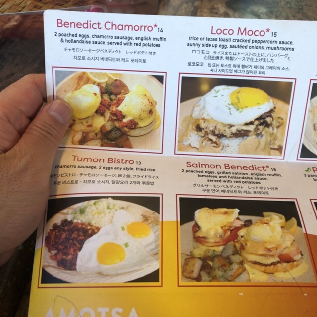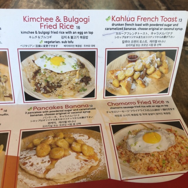安そうな店と思ったが締めてみて、ドリンクやら10%サービスチャージ(チップ)やらで価格は2人で38.5ドル、4343円。なかなか高いグアムの朝食であった。