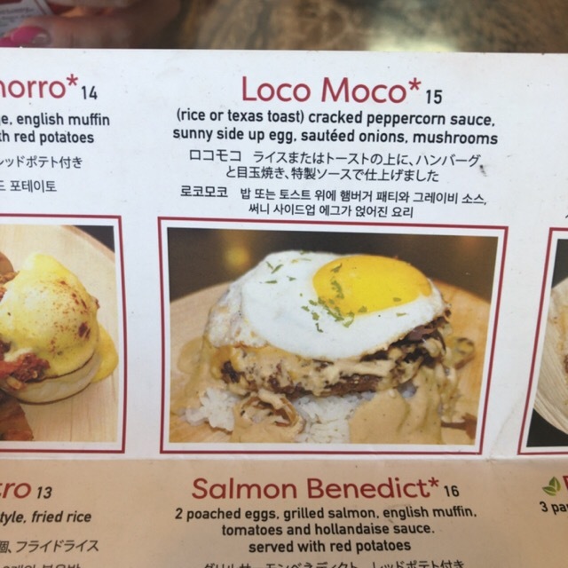 人気メニューというベネジクトチャモロUSD14とロコモコ15ドルをオーダー。