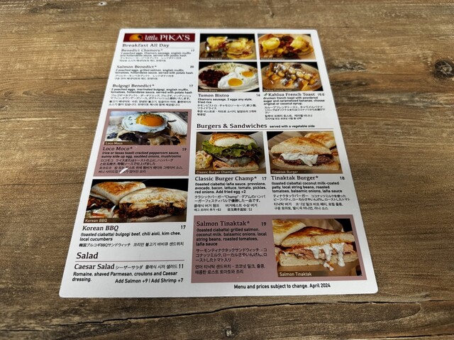 Benedict Chamoro $17(チャモロソーセージベネディクト)、Classic Burger Champ $17