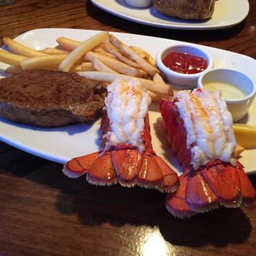 サーロイン&ロブスターテイルコンボは、9onz(225g)のサーロインステーキのミディアムレアと